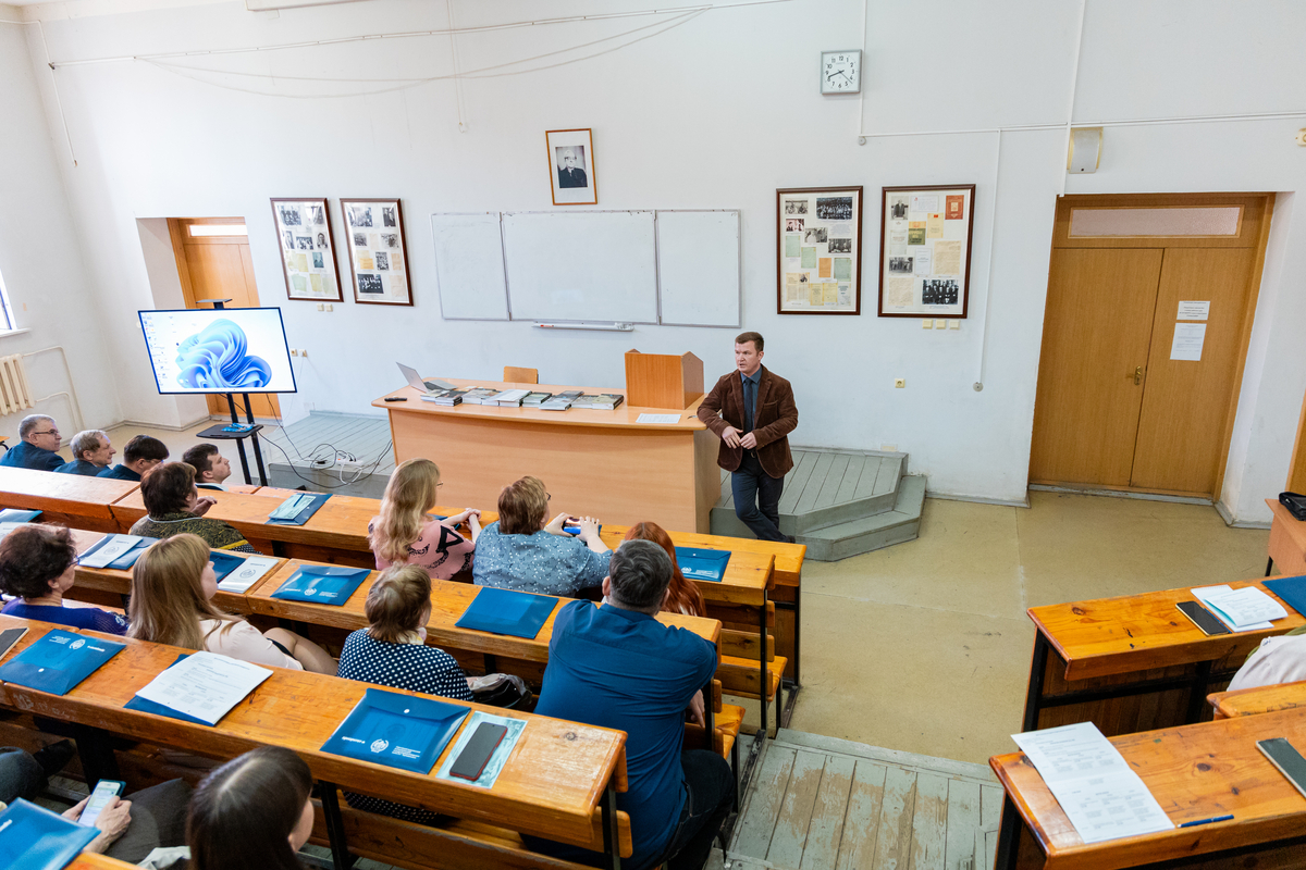 Алексей Николаевич напомнил, что в исторической аудитории читали лекции великие учёные, именно в БФА профессор Н.И. Вавилов представил доклад «Закон гомологических рядов в наследственной изменчивости», положивший начало развитию генетики в СССР. Ректор отметил, что университет рассматривает сотрудничество с учителями школ как одно из важнейших направлений работы: