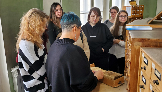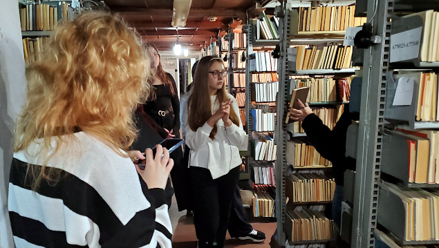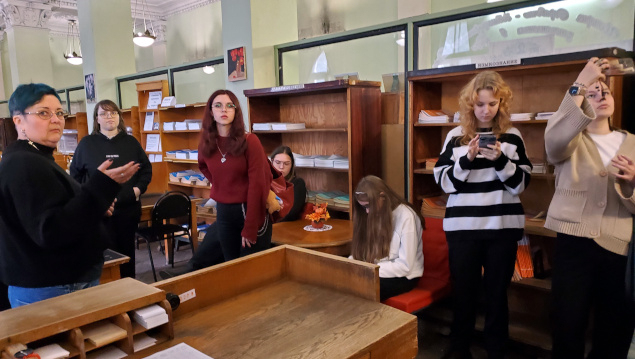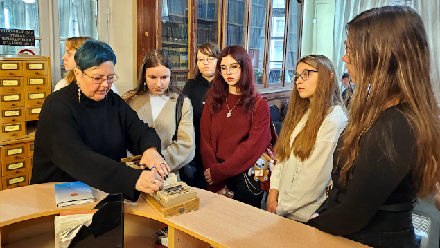 В книгохранилище и справочно-библиографическом отделе узнали о различных способах организации хранения фондов. В отделе периодических изданий студенты имели возможность увидеть научные и научно-популярные журналы, узнать структуру журнала как издания, алгоритм пользования читательскими алфавитными каталогами, а также об особенностях хранения газет.
