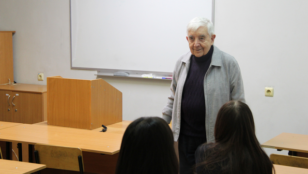 В среду, 22 октября, научный руководитель Института филологии и журналистики, заведующий кафедрой общего литературоведения и журналистики, профессор В. В. Прозоров провёл занятие в Клубе абитуриентов ИФиЖ. В начале встречи Валерий Владимирович поделился воспоминаниями о своих школьных годах, а затем познакомился с каждым старшеклассником и попросил рассказать о себе.