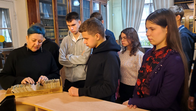 Студенты познакомились с общими правилами пользования библиотекой, организацией карточных каталогов (алфавитных, систематического), системой поиска и заказа книги. Отдельный этап экскурсии был посвящён электронным каталогам и базам.