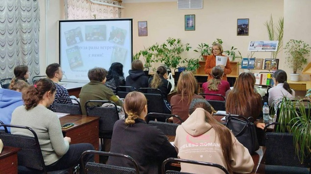 Библиотечную часть встречи подготовила и провела главный библиотекарь сектора обслуживания читателей ОУООПН ЗНБ СГУ Ольга Викторовна Храмова.