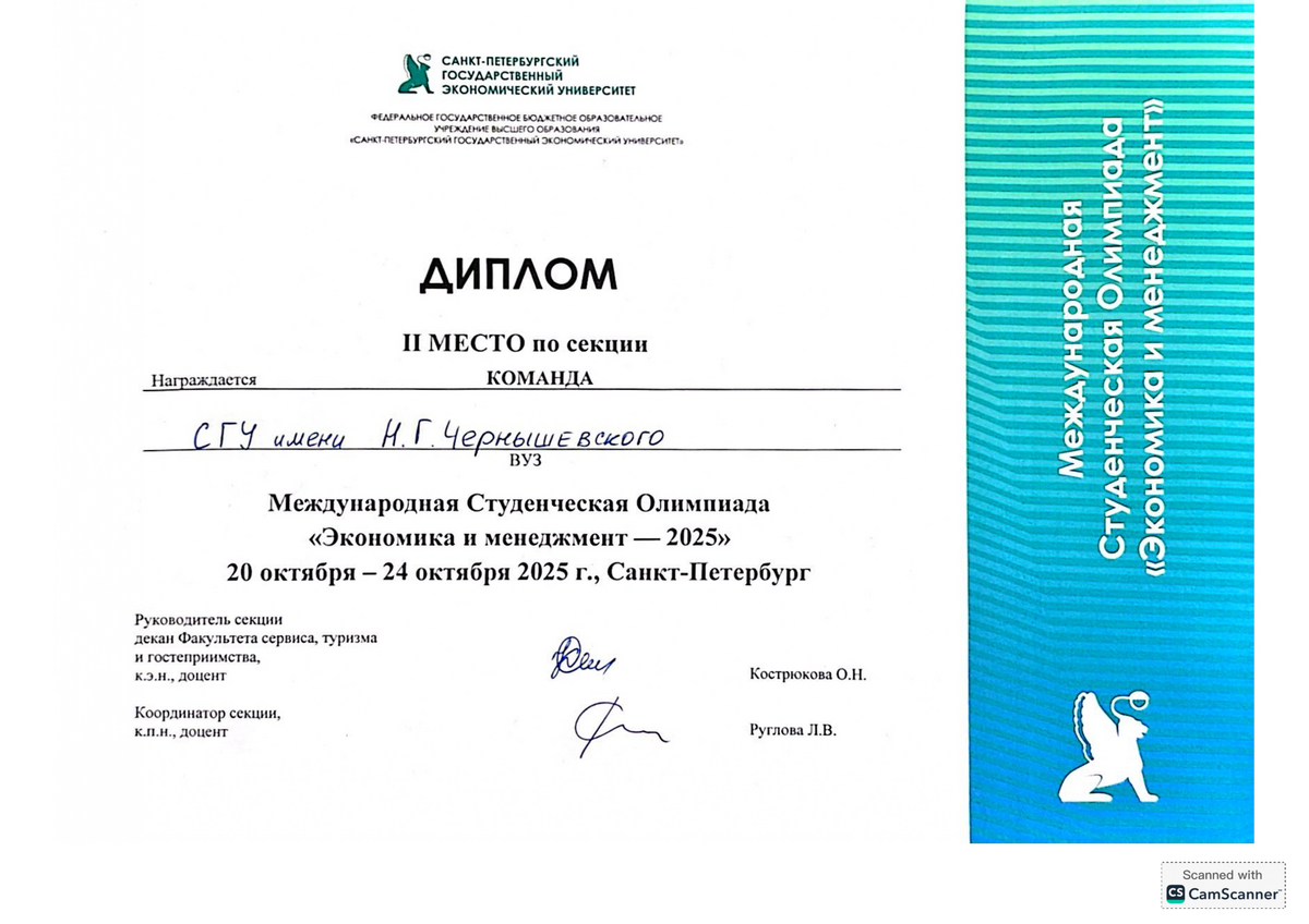 Студентки 4 курса бакалавриата н.п. «Сервис» Аиша Текферд и Арина Фомченко, студентка 2 курса магистратуры н.п. «Инновационный сервис» Виктория Новицкая под руководством доцента кафедры туризма и культурного наследия М.С. Отнюковой приняли участие в Международной Студенческой Олимпиаде «Экономика и менеджмент - 2025» в секции «Менеджмент туризма, гостеприимства, конгрессно-выставочной деятельности и креативных индустрий».