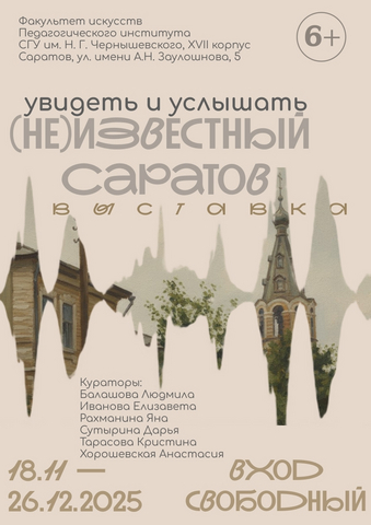 18 ноября состоится открытие студенческой кураторской выставки «(Не)известный Саратов: увидеть и услышать»