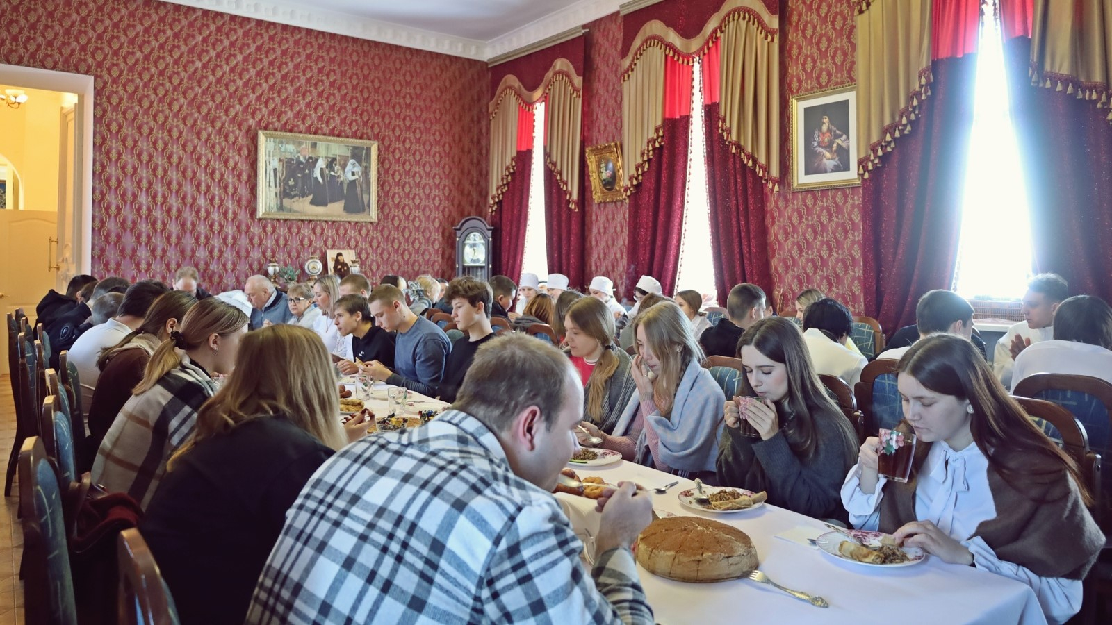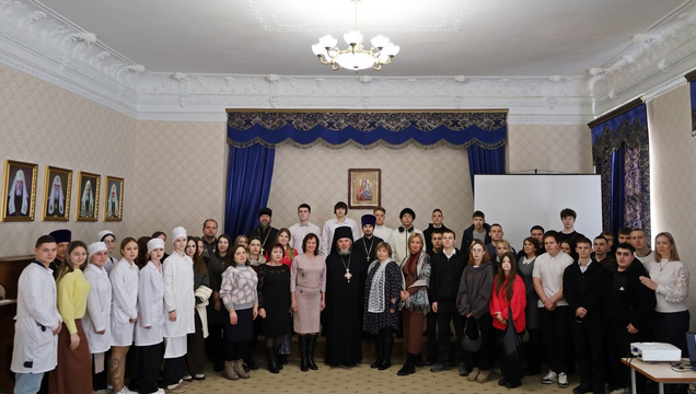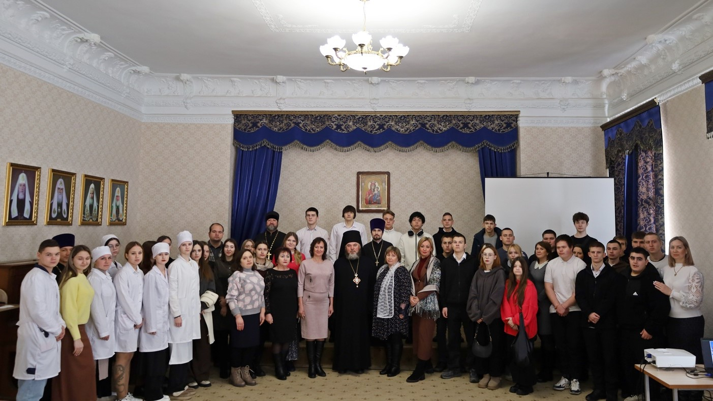 По окончании богослужения студенты были приглашены в актовый зал епархии на торжественное мероприятие, посвященное Дню российского студенчества. Епископ Балашовский и Ртищевский Тарасий обратился к присутствующим с приветственным словом, пожелав студентам успехов в учебе, жизненной мудрости и духовного укрепления. К словам поздравлений присоединились заместитель директора по воспитательной и социальной работе Балашовского института Л.М. Руднева, руководитель Балашовского медицинского колледжа Н.И. Еремина, заместитель директора по воспитательной работе Балашовского техникума механизации сельского хозяйства О.В. Саврасова и заместитель директора по учебно-воспитательной работе Балашовского политехнического лицея Л.М. Илясова. Они отметили важность духовно-нравственного компонента в образовании и поделились опытом вовлечения студентов в добровольческие инициативы.