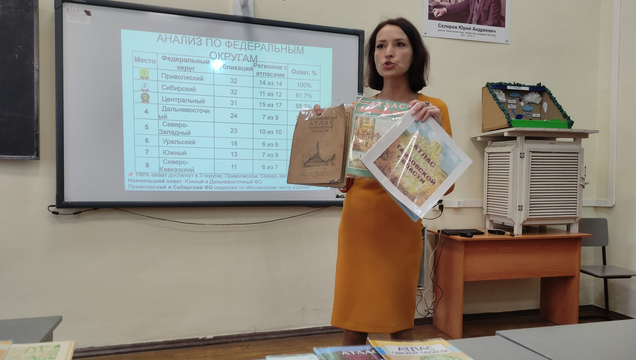 Научная программа конференции охватила широкий спектр направлений — от климатических изменений до демографических процессов. Заведующая кафедрой экономической и социальной географии, доцент Анна Вячеславовна Затонская совместно со студентом П.А. Покрашенко представила исследование «Неравномерность картографической обеспеченности субъектов РФ: количественный и пространственный анализ (на примере тематических атласов)». В своем выступлении Анна Вячеславовна акцентировала внимание на существующем дисбалансе в картографическом изучении регионов страны, показав количественные оценки этого разрыва. Выступление сопровождалось показом коллекции атласов регионов России в ретроспективе, а сам доклад вызвал оживленную дискуссию о необходимости унификации подходов к созданию картографических материалов для каждого региона страны.