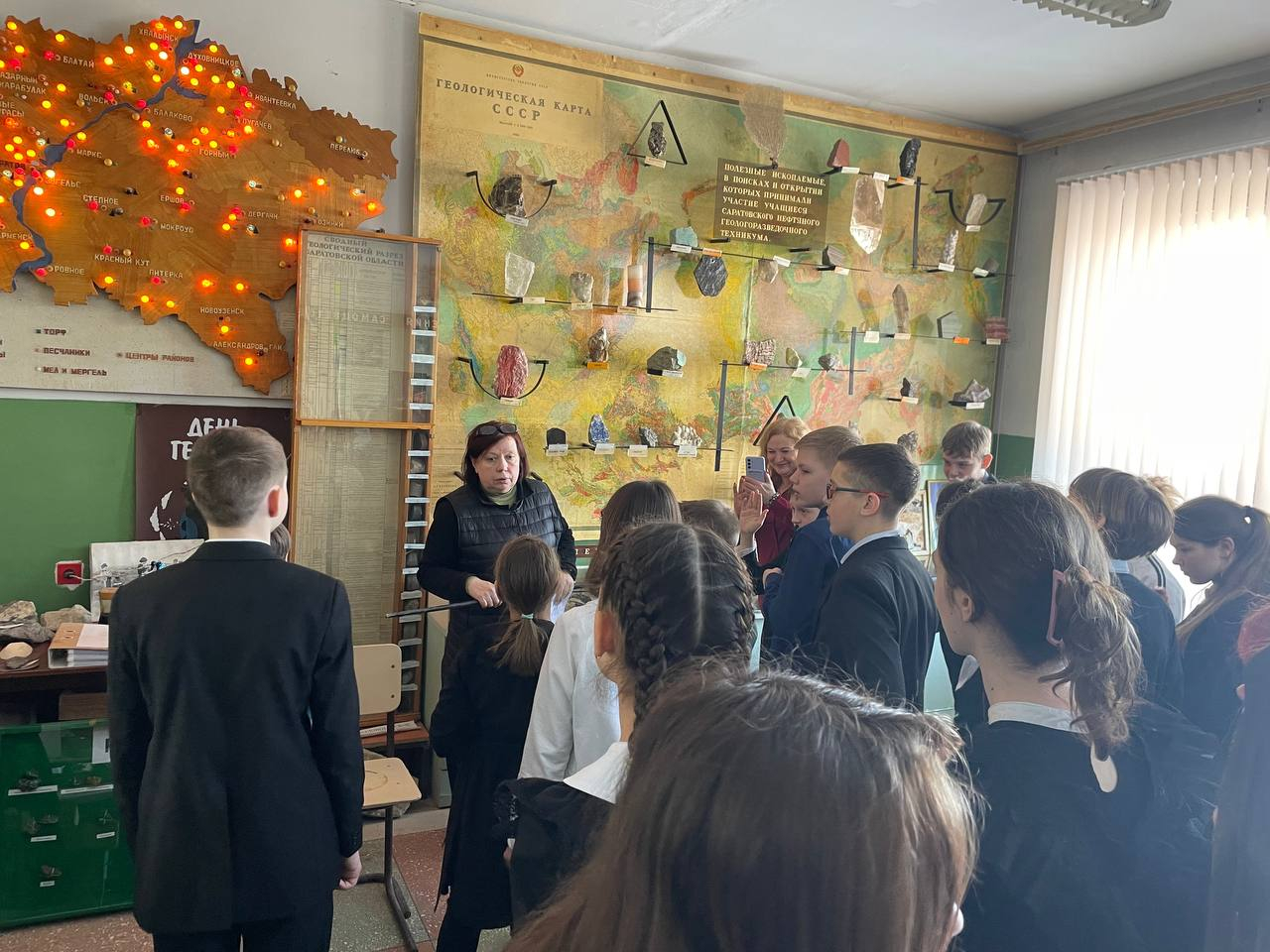 Экскурсии в Музей геологии геологического колледжа, где учащиеся познакомились с уникальной коллекцией минералов, горных пород и полезных ископаемых. Заведующий нефтяным отделением Л. С. Громова представила экспозицию, включающую макеты буровых установок, и проследила историю развития нефтегазовой промышленности и геологоразведки в Саратовской области. Посещение музея подчеркнуло связь времён и предоставило возможность прикоснуться к профессиональному наследию колледжа.