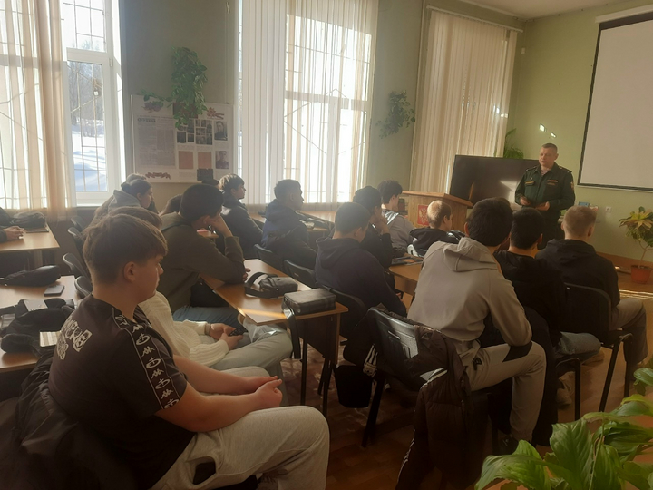 17 февраля 2026 года со студентами выпускных групп специальностей 21.02.01 Разработка и эксплуатация нефтяных и газовых месторождений, 21.02.02 Бурение нефтяных и газовых скважин, 21.02.10 Геология и разведка нефтяных и газовых месторождений и 21.02.03 Сооружение и эксплуатация газонефтепроводов и газонефтехранилищ была проведена разъяснительная беседа по Федеральному закону «О воинской обязанности и военной службе».