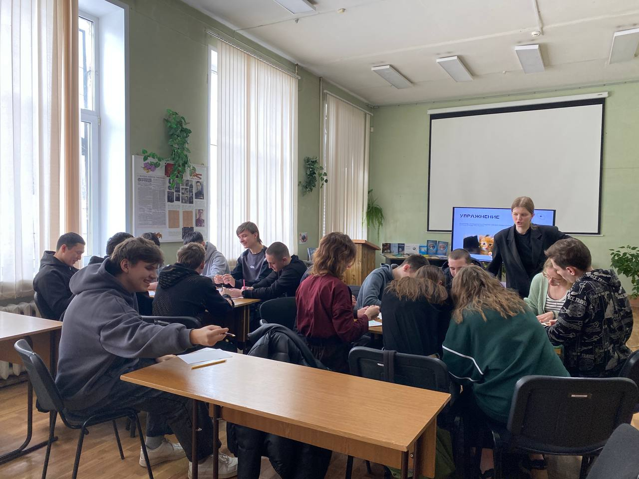 В ходе тренинга студенты были проинформированы об этапах создания семьи, ролях внутри семьи и её важности для каждого отдельного человека. Практическая часть тренинга состояла из арт-терапевтического упражнения, где студенты нарисовали свою семью в виде растений и делились своими впечатлениями и чувствами.