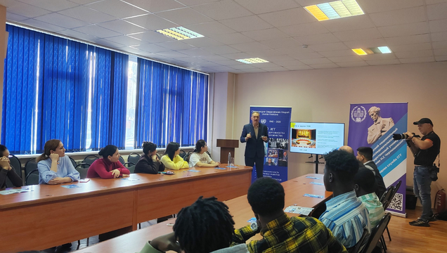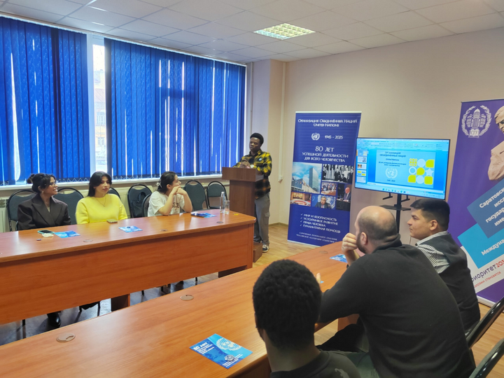 В преддверии старта ежегодной модели ООН состоялась лекция-презентация для иностранных студентов «80 лет ООН». В роли лектора выступил член Попечительского совета СГУ, председатель Саратовского регионального отделения Российской ассоциации содействия ООН, директор АНО "ИРСЭПИ" - Шашко Владимир Александрович. В ходе лекции было подробно рассказано об истории создания ООН и работе каждого комитета. Особенное внимание лектор уделил идеям всеобщего равенства и роли вечных общечеловеческих ценностей в современной жизни .