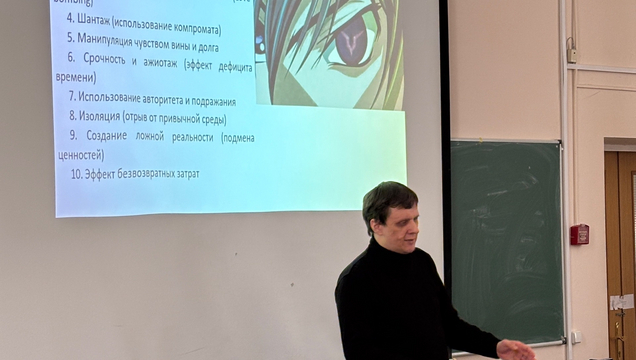 Для студентов 1 и 4 курсов факультета психологии были проведены интерактивные лекции, посвященные актуальной проблеме психопрофилактики вовлечения молодежи в деструктивные организации. Основной акцент мероприятия был сделан на психологических механизмах вербовки и методах скрытого управления сознанием.