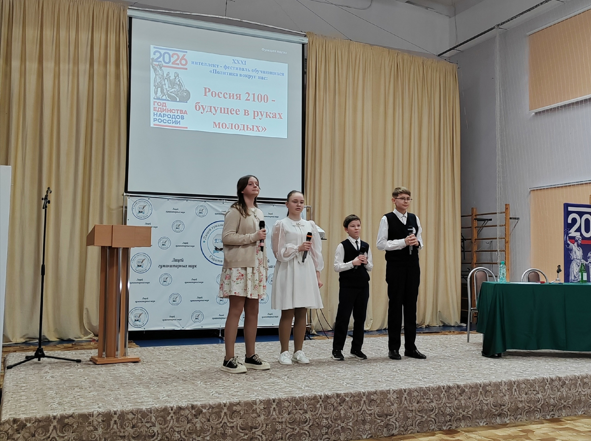 27 марта в Лицее гуманитарных наук прошел ХХХI международный интеллект-фестиваль «Политика вокруг нас: Россия 2100 - будущее в руках молодых», посвященный Году единства народов России.
