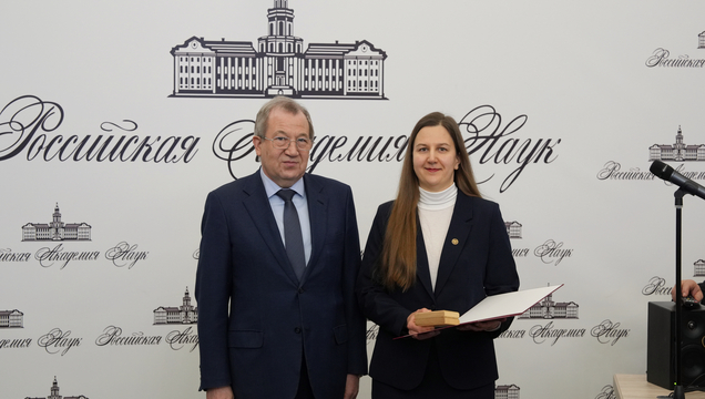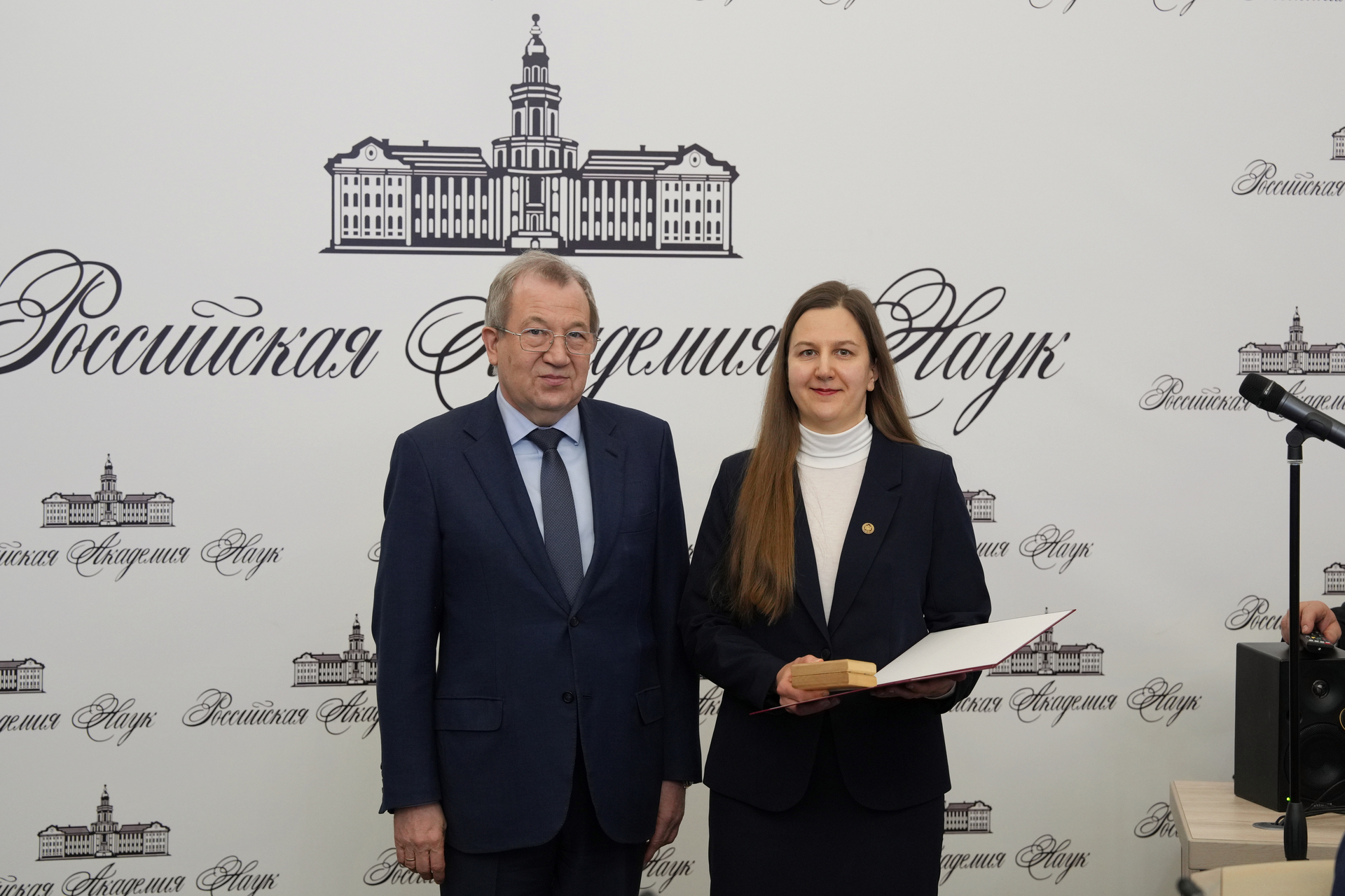 3 февраля 2026 года в рамках заседания Президиума Российской академии наук состоялась торжественная церемония вручения медалей молодым учёным и студентам по 21 научному направлению. Напомним, что доцент кафедры физики открытых систем нашего института Светлана Евгеньевна Шешукова была удостоена этой высокой награды за выдающийся цикл работ в области информационных технологий, вычислительной техники и автоматизации.