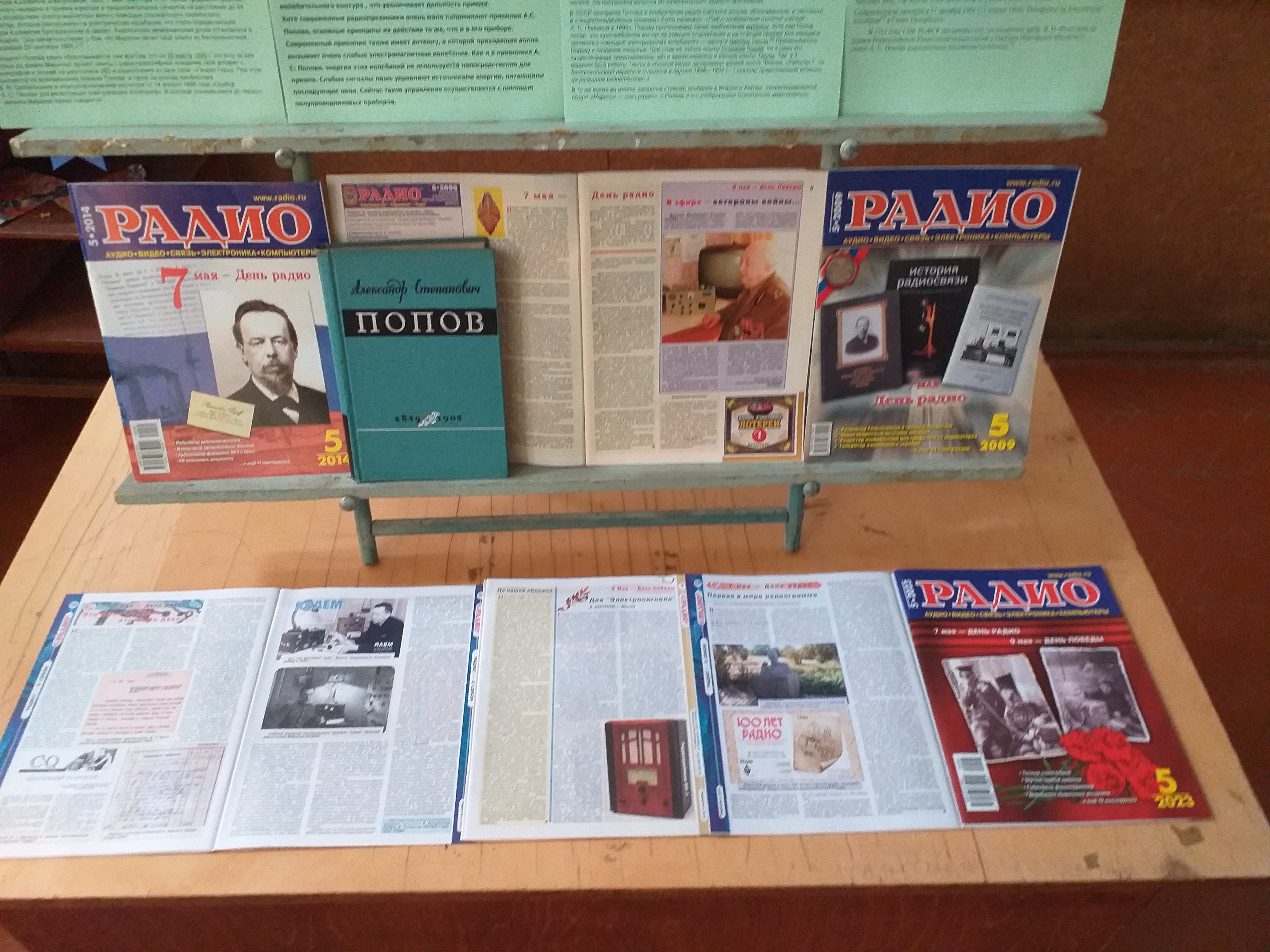На выставке представлены книги и журналы о Дне радио и Александре Степановиче Попове.