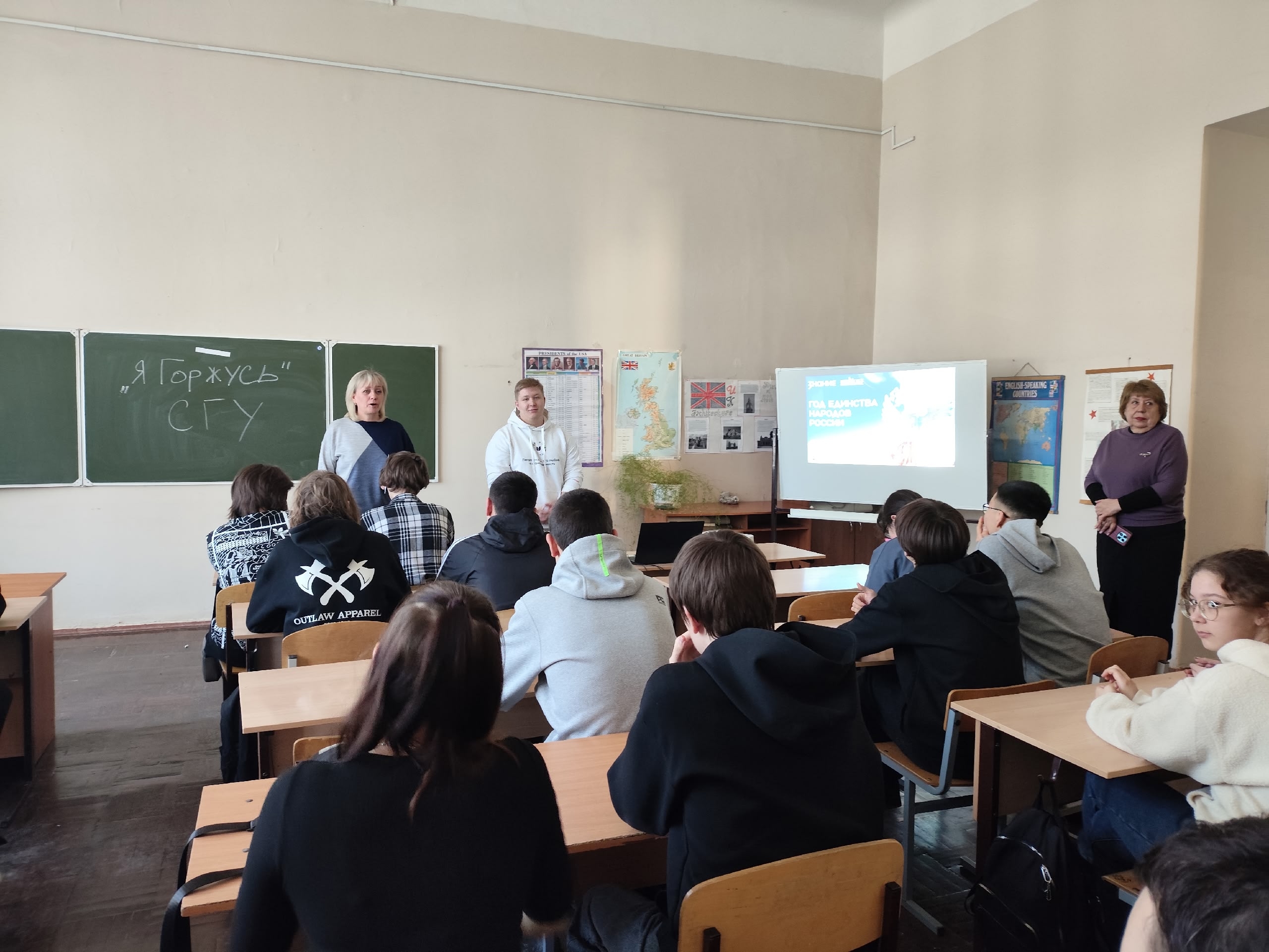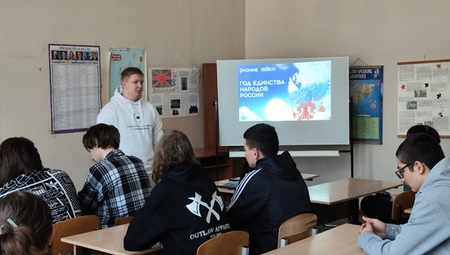 12 марта 2026 года для студентов групп 9261, 9262 Колледжа радиоэлектроники имени П. Н. Яблочкова сотрудник патриотического клуба «Я Горжусь» СГУ Осипов Федор провел квиз посвящённый Году единства народов России.