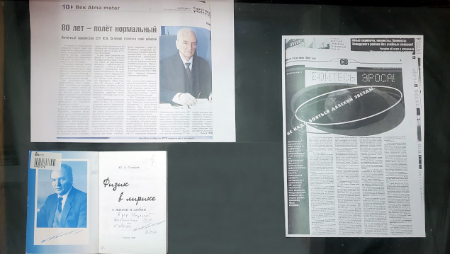 Основу выставки составили книги ученого и статьи в периодических изданиях, в научных сборниках. На выставке представлена монография «Пиргелиометрия», ставшая самым цитируемым трудом профессора Склярова. Особой страницей экспозиции следует считать поэтические книги Юрия Андреевича — «Физик в лирике» и «Физик в лирике. О жизни и любви».