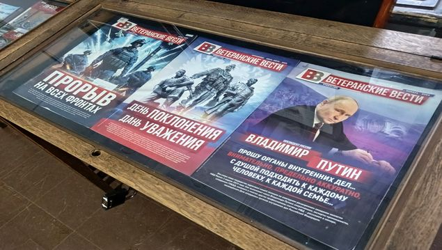 Далее экспонируются периодические издания: выпуски журнала «Боевое братство» и газеты «Ветеранские вести», в которых читатель найдёт новые сведения о СВО на Украине и событиях, связанных с нею. Среди них статьи Р. Бусаргина «Мы говорим спасибо каждому бойцу», А. Чумаченко «Ориентир для современного образования – нравственные ценности наших защитников», «За сыновей – сердечное спасибо!: [о вручении медали «Отец солдата» кадровому военному врачу и ветерану военной службы Алексею Щербакову. В Саратовской области почётную награду «Отец солдата» получили уже больше трёх десятков жителей региона]», «Мурал каждому герою СВО!: [о портретах бесстрашных бойцов СВО, уроженцев Саратовской области, в городском ландшафте]», «Президент сказал – помочь! [о работе соцкоординаторов в Саратовской области]», Саратовская консерватория: ритмы Победы для защитников Отчизны: [о сотрудниках и педагогах Саратовской государственной областной консерватории имени Л. В. Собинова, приезжающих с концертами в зону СВО], «Тыл-это тоже фронт: [о работе губернатора Саратовской области Романа Бусаргина)]», Саратов – Фронт – Саратов: [о деятельности Саратовского областного отделения «Боевое братство»] и другие.