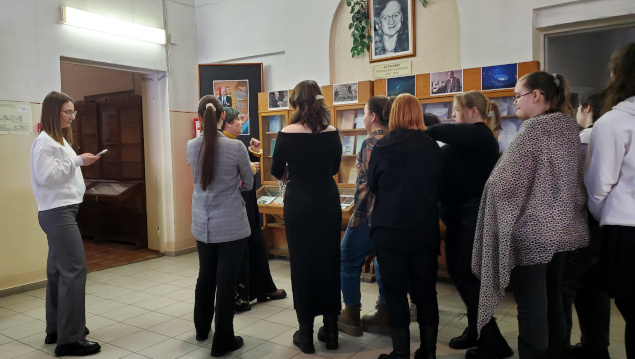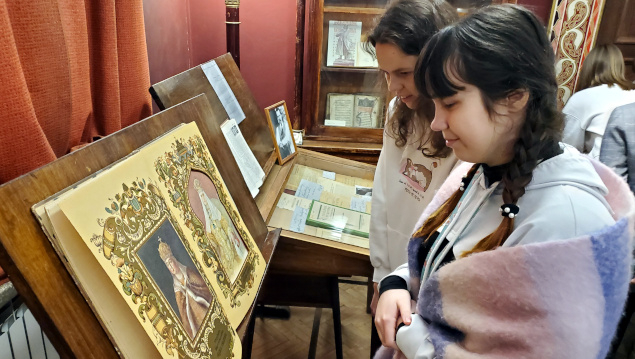 Во второй части экскурсии на выставке по истории русской книги студенты узнали об особенностях рукописных и старопечатных изданий, о журналах екатерининского, петровского времени и Серебряного века, увидели издания с автографами, познакомились с особенностями формирования фонда отдела редких книг и рукописей, услышали о коллекционерах-дарителях.