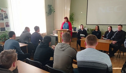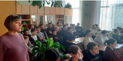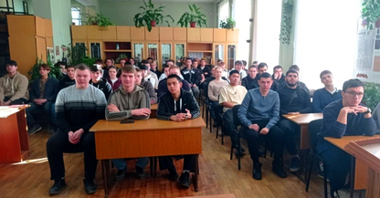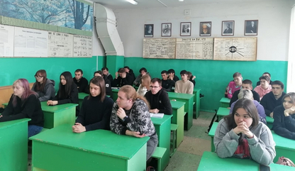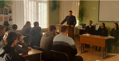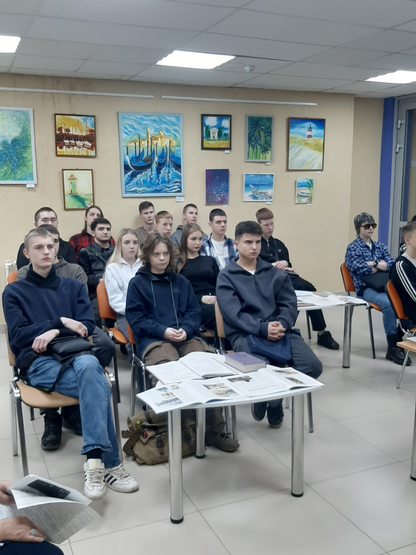 Студенты Геологического колледжа СГУ встретились с ветеранами Военно-морского флота России В.А. Ивановым и Ю.П. Шабашевым, представителями районной организации ветеранов И.В. Кочетковой и Е.П. Миловидовой.