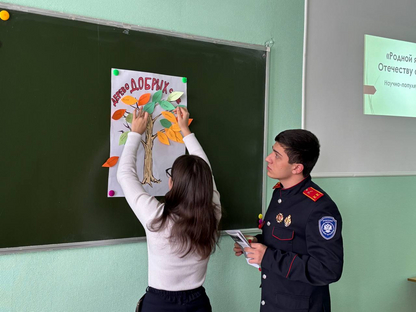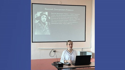 Анна Кичатова подготовила сообщение об истории праздника «День защитника Отечества», подкрепив его содержательной презентацией. Она рассказала об истоках праздника, исторических предпосылках его появления, героических подвигах воинов разных поколений. «Этот праздник отмечают в нашей стране уже много лет, он стал неотъемлемым символом и частью нашей истории. Его переименовывали, менялся статус, но он не утратил своей актуальности и сохранился как символ памяти, которую мы бережно передаём друг другу и молодому поколению в знак уважения к нашей истории, нашим героям и нашей Родине», - сказала Анна.