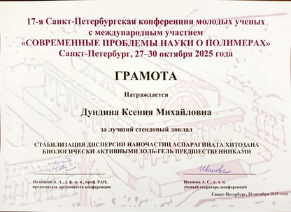 На заседании диссертационного совета по химическим наукам состоялась защита кандидатской диссертации Е.В. Ленгерт