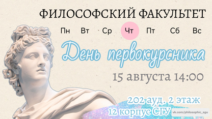 15 августа 2024 г. на философском факультете состоится собрание с абитуриентами, зачисленными на 1 курс образовательных программ бакалавриата.