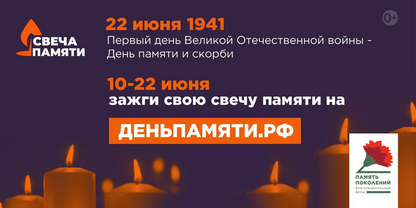 🕯 10 июня по всей России начинается онлайн-акция «Свеча памяти». До 22 июня на сайте деньпамяти.рф каждый желающий сможет зажечь виртуальную свечу и отдать дань уважения героям Великой Отечественной войны.