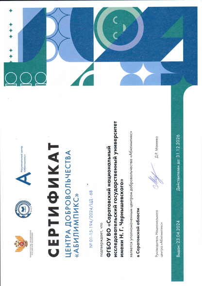 Саратовский национальный исследовательский государственный университет имени Н.Г. Чернышевского
