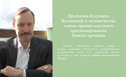 18 апреля 2025 г. для студентов философского факультета была организована онлайн-лекция на тему «Проблема будущего Вселенной и человечества сквозь призму научного прогнозирования Нового времени» профессора Артема Александровича Кротова, доктора философских наук, заведующего кафедрой истории и теории культуры Московского государственного университета имени М.В. Ломоносова.