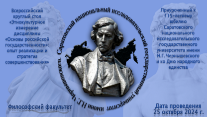 25 октября 2024 г. на философском факультете пройдет Всероссийский круглый стол «Этнокультурное измерение дисциплины «Основы российской государственности»: опыт реализации и стратегия совершенствования».