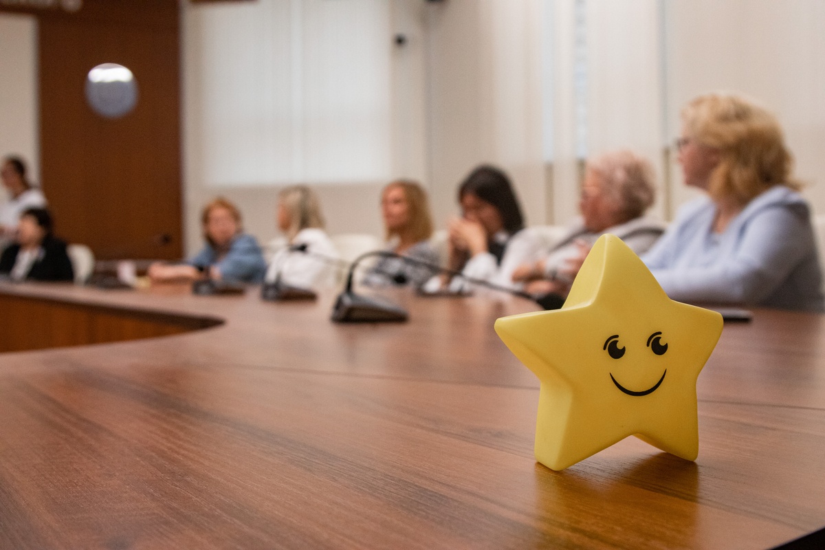 Далее участники разбились на группы и выполнили интерактивное задание: пытались выявить ключевые смыслы учительской профессии через ассоциации со случайными предметами.