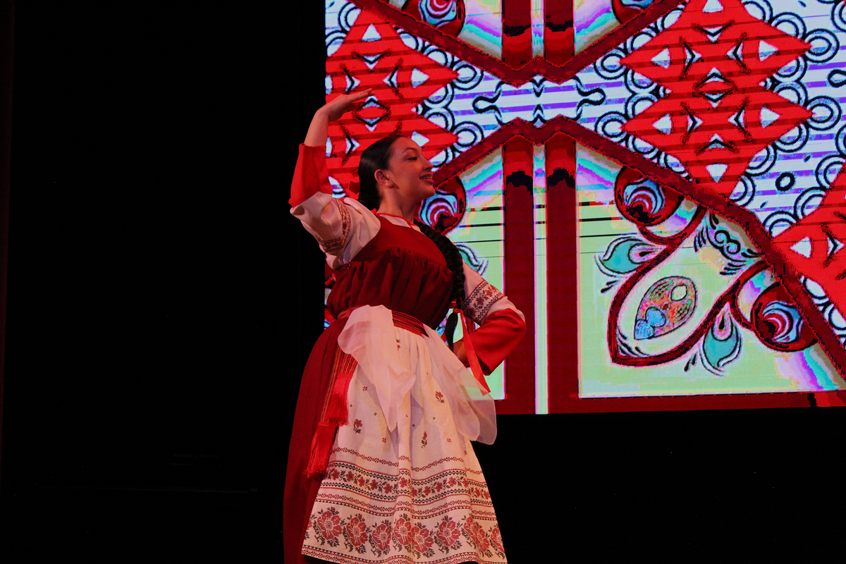 Церемония награждения сопровождалась творческими номерами. Для собравшихся выступил ансамбль народного танца «Меридиан». Хореографической постановкой порадовали студентки Института филологии и журналистики Карина Уталиева и Вероника Ларионова.