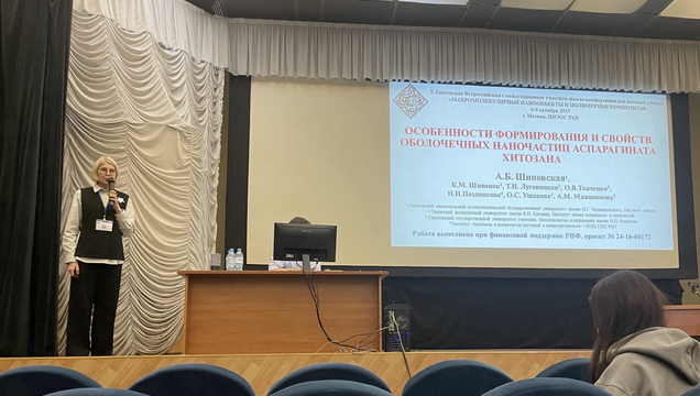 Профессор, заведующий кафедрой полимеров на базе ООО «АКРИПОЛ» Шиповская Анна Борисовна выступила с устным докладом «Особенности формирования и свойств оболочечных наночастиц аспарагината хитозана» на X Бакеевской Всероссийской с международным участием школе-конференции для молодых ученых «Макромолекулярные нанообъекты и полимерные композиты». Мероприятие проходило 6-9 октября 2025 г. в Институте элементоорганических соединений им. А.Н. Несмеянова РАН в Москве.