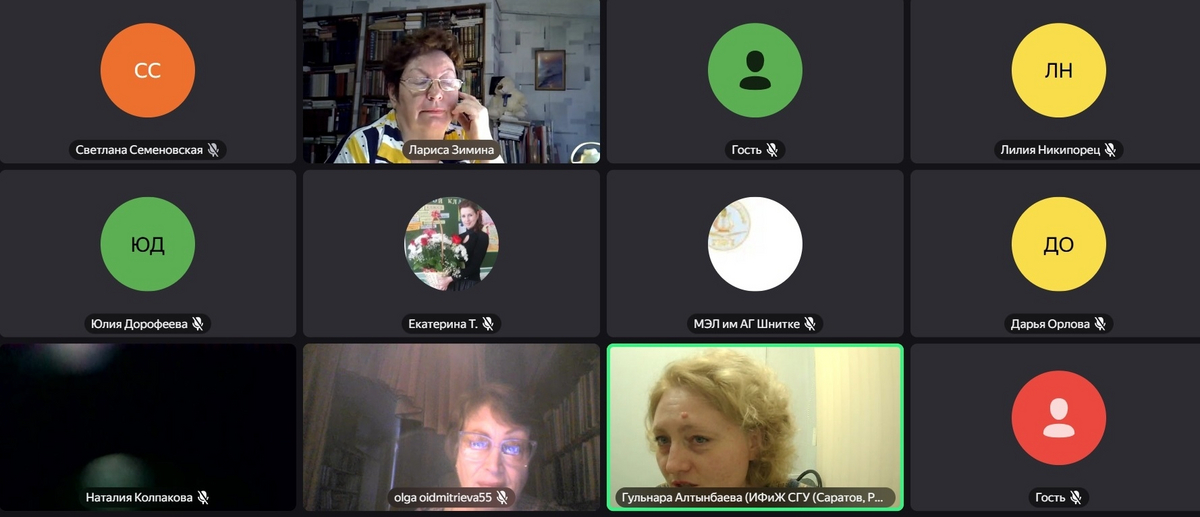 В вебинарах приняли участие учителя ряда школ Саратова и области (МОУ «ГЭЛ», ГАНОУ СО «МЭЛ им. А.Г. Шнитке», ГАОУ СО «Лицей гуманитарных наук», ГАОУ СО «Гимназия № 1», МАОУ «Гимназия № 2», МОУ «Гимназия № 5», МОУ «Гимназия № 7 имени К.Д. Ушинского»; МАОУ «Лицей №62», , МАОУ «Лицей №3 им. А.С. Пушкина», ГАПОУ СО «СООК - Политехнический колледж - Лицей-интернат 64», МОУ СОШ №3 им. В.Н.Щеголева п. Светлый, МОУ «СОШ № 77», филиала МОУ-СОШ № 10 г. Аткарска в с. Барановка), а также преподаватели кафедры русской филологии на базе ГЭЛ (зав. кафедрой доктор филологических наук О.И. Дмитриева, доцент С.А. Семеновская).