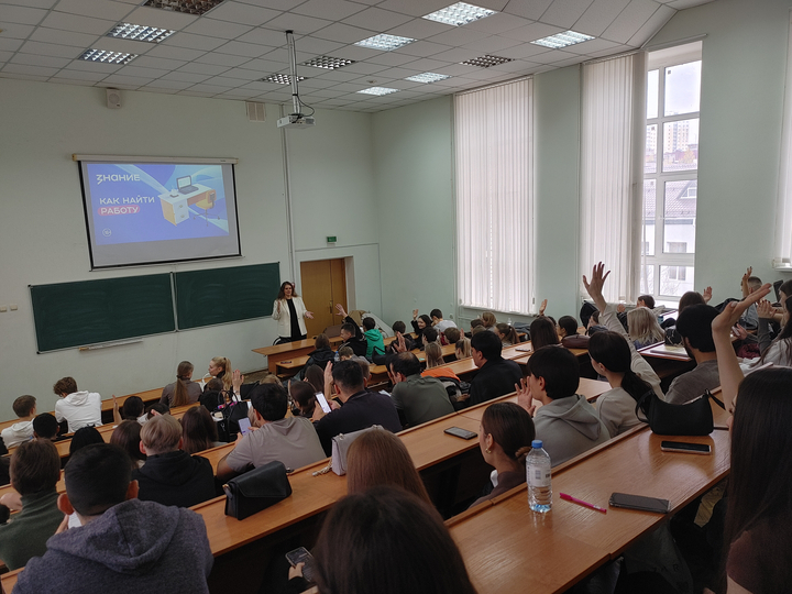 На экономическом факультете СГУ стартовал марафон профессионального развития. В рамках марафона профессионального развития проведено просветительское мероприятие от Российского общества «Знание», которое собрало более 130 студентов 2 и 3 курсов. Темы лекций и викторины: «Как найти работу!».