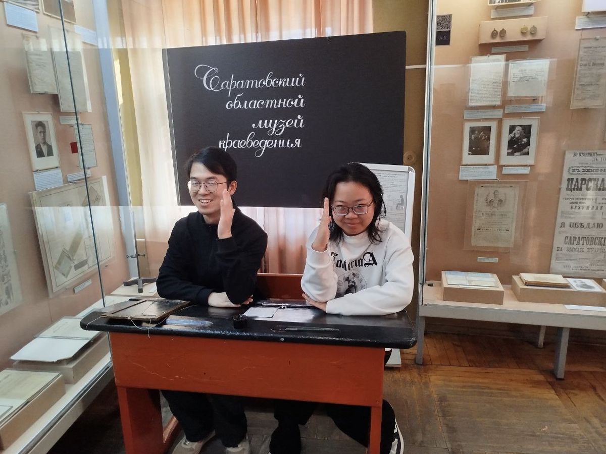 Экскурсия в Саратовский музей краеведения стала для китайских студентов СГУ первым шагом в этом направлении. В экспозиции музея они не только познакомились с особенностями природы и историей Саратовского края с древнейших времен до наших дней, узнали о древнем золотоордынском городе Укеке, истории заселения края XVII–XVIII вв. и основания Саратова, но и получили представление о культуре и традиционных российских духовно-нравственных ценностях. Они имели возможность прикоснуться к традициям своими руками: звонили в церковные колокола, поучаствовали в свадебной церемонии, примерили русские головные уборы, а некоторые побывали в роли невесты. Особый интерес у студентов вызвали интерактивные элементы экскурсии: с помощью механических тисков они «изготовили» продукцию первого Саратовского кирпичного завода, а за советскими партами с откидными столешницами почувствовали себя школьниками. Живой интерес вызвали экспонаты выставки «Дорога в космос», связанной с именем Юрия Гагарина, а также история, связанная с губернатором Саратова П.А. Столыпина.