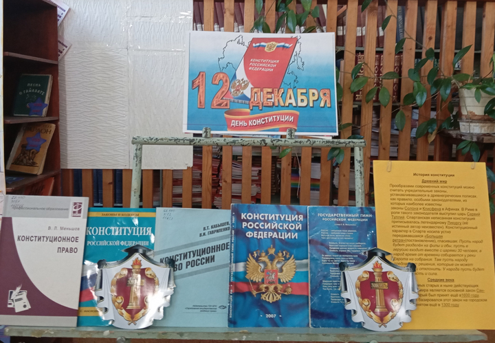 10 декабря 2025 года в библиотеке Колледжа радиоэлектроники открылась книжно-информационная выставка, посвященная памятной дате - Дню Конституции Российской Федерации, принятой всенародным голосованием 12 декабря 1993 года.