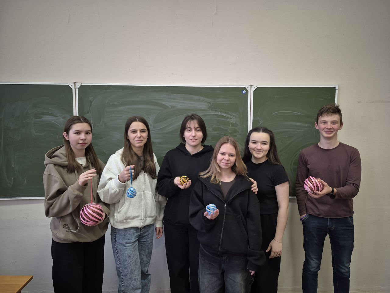 В этот раз, Светлана Вячеславовна провела мастер-класс по изготовлению спиральных елочных шаров из фоамирана.