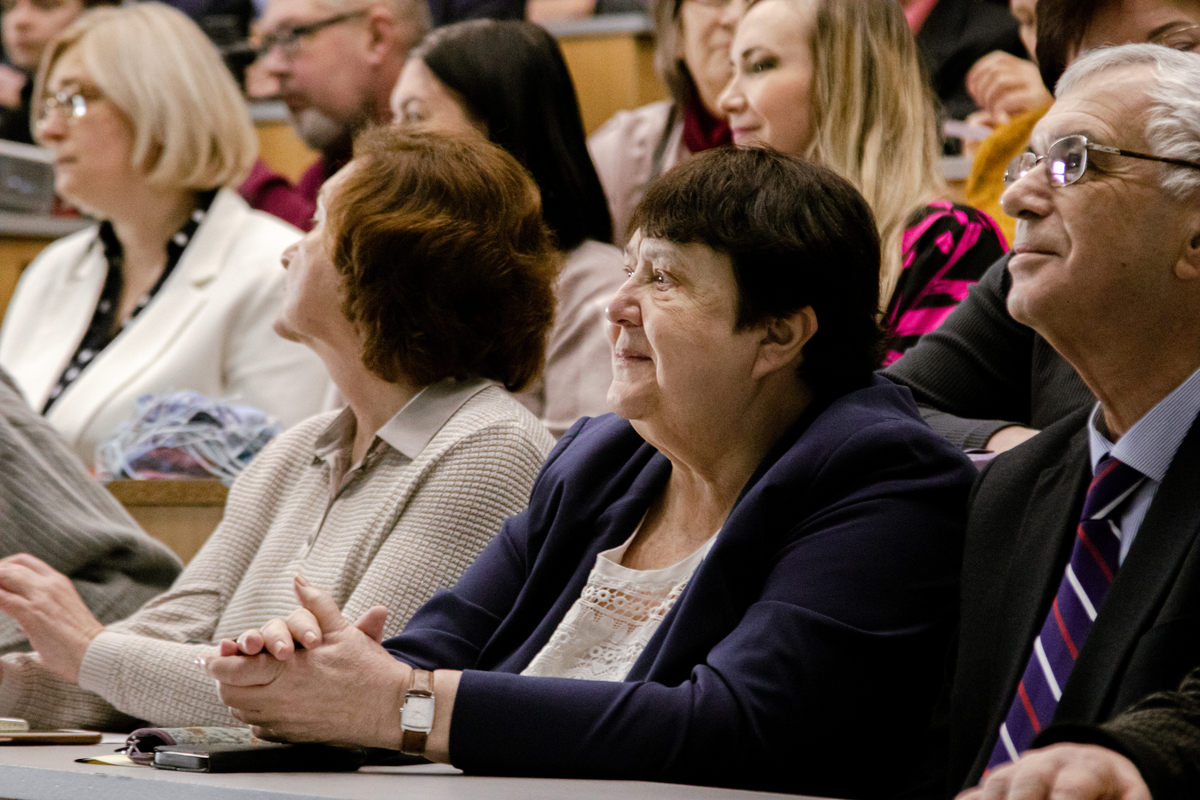 Кстати, они присутствуют сегодня в зале! Это наши выдающиеся математики, настоящая легенда факультета – супруги Август Петрович Хромов, воспитавший целую плеяду учеников, и Галина Владимировна Хромова, первая женщина в истории факультета, защитившая докторскую диссертацию по математике.