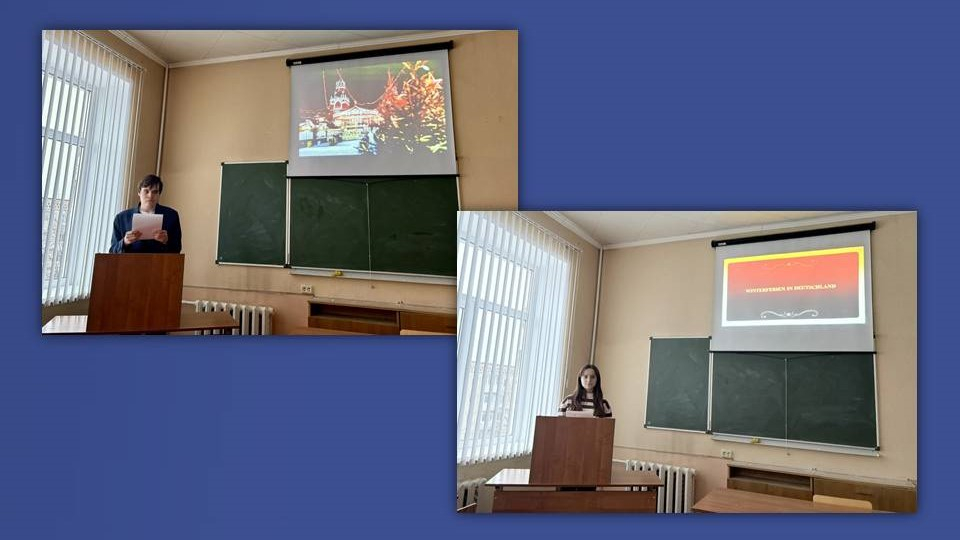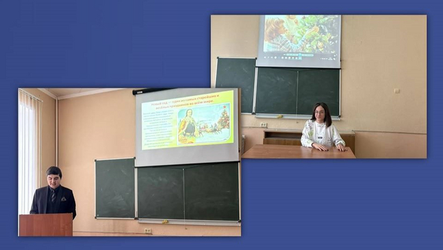 В рамках кураторской работы доцентами кафедры филологических дисциплин Ю.С. Камардиной, А.Е. Чурановым был организован круглый стол «Диалог культур: страны и традиции», целью проведения которого стало знакомство участников с особенностями празднования Нового года и Рождества в разных странах мира (России, Великобритании, США, Австралии, Германии, Франции, Италии, Испании, Дании, Норвегии, Финляндии, Узбекистане, Турции, Индонезии, Латвии, Эстонии).