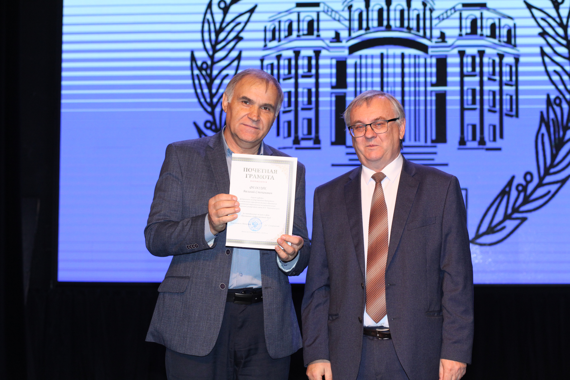 Учёный совет СГУ продолжился награждением почётными грамотами Министерства науки и высшего образования России за значительные заслуги в сфере образования и добросовестный труд. На сцену были приглашены: