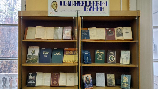 Начала работу книжная выставка, посвященная 155-летию со дня рождения И. А. Бунина, русского писателя, лауреата Нобелевской премии по литературе.