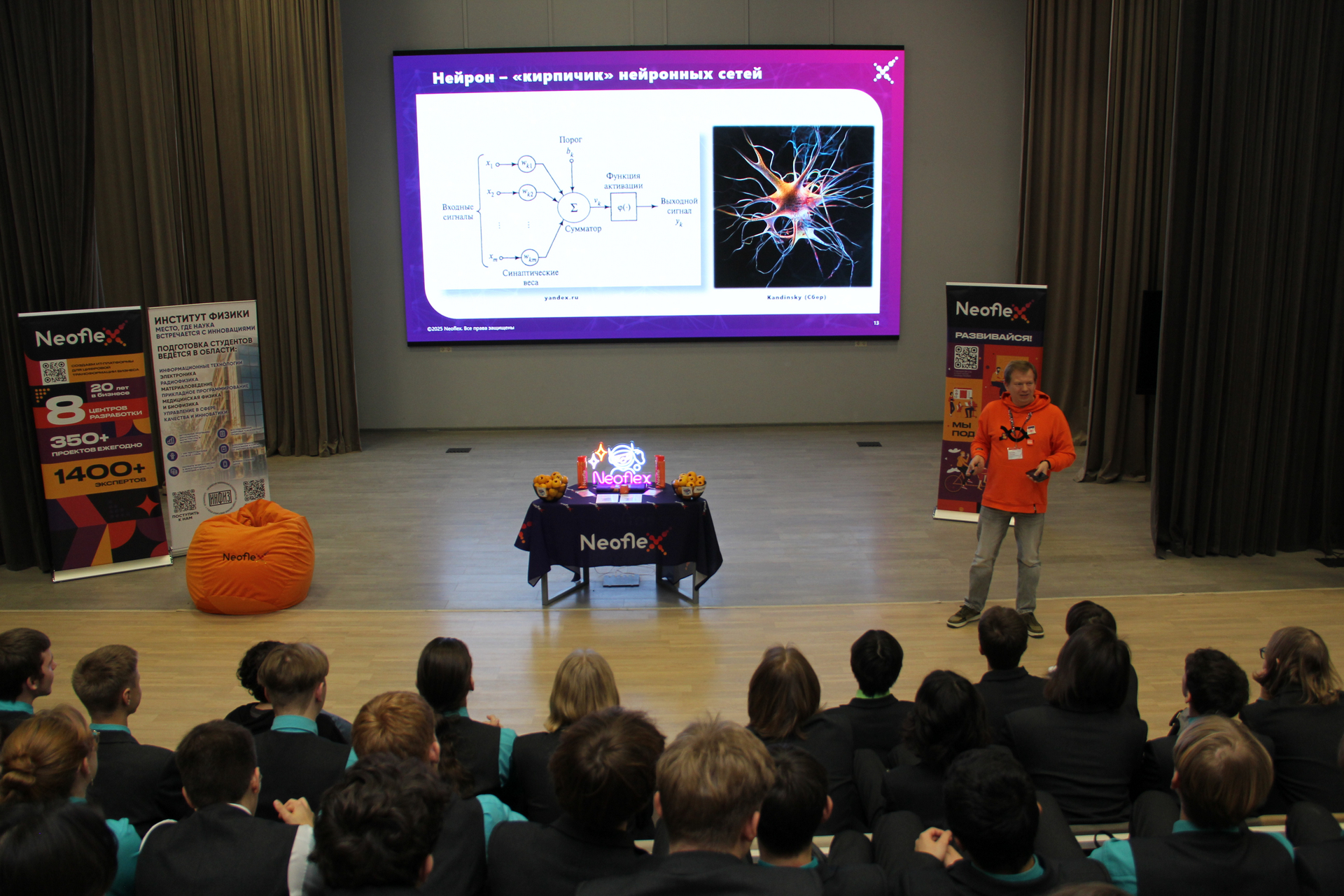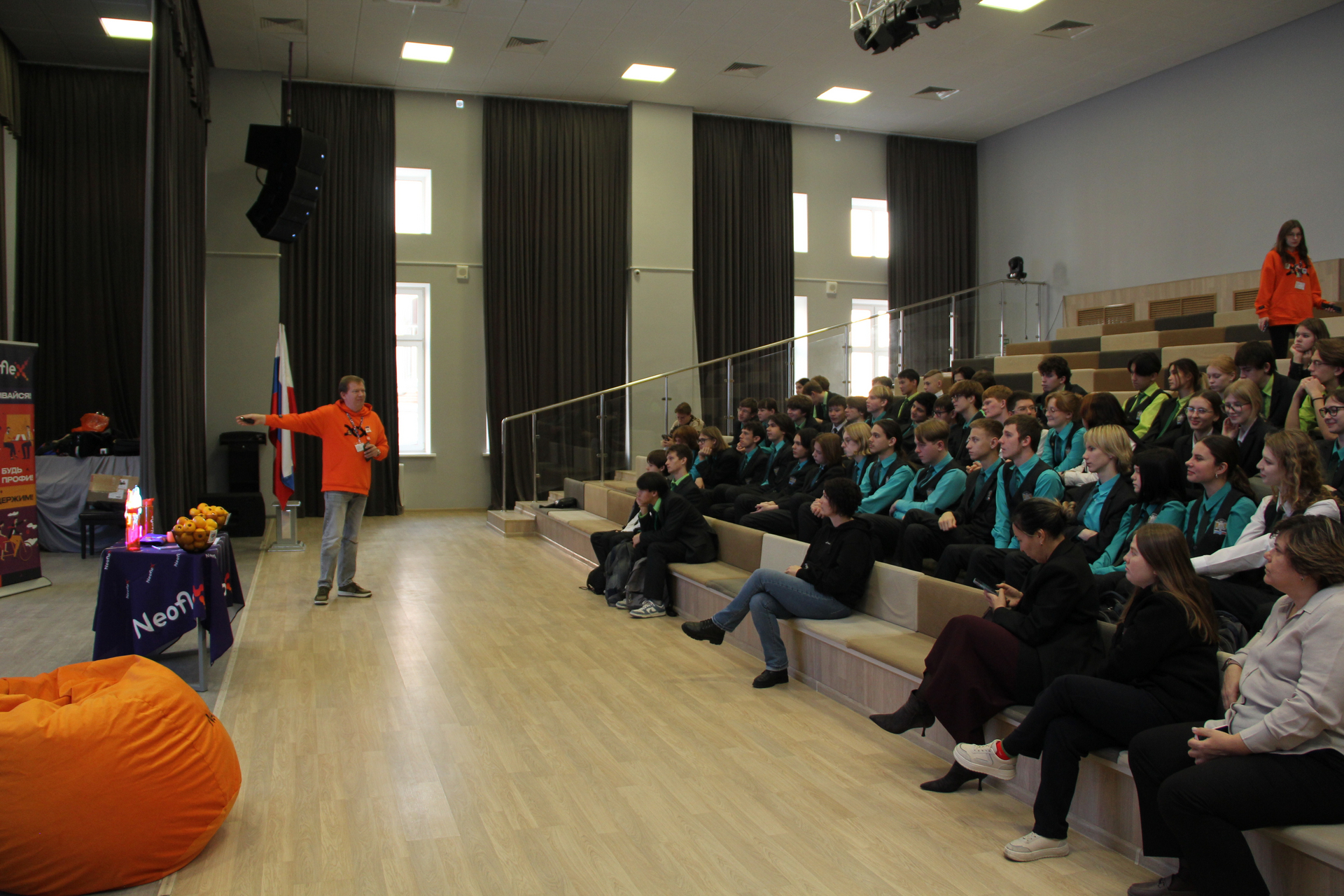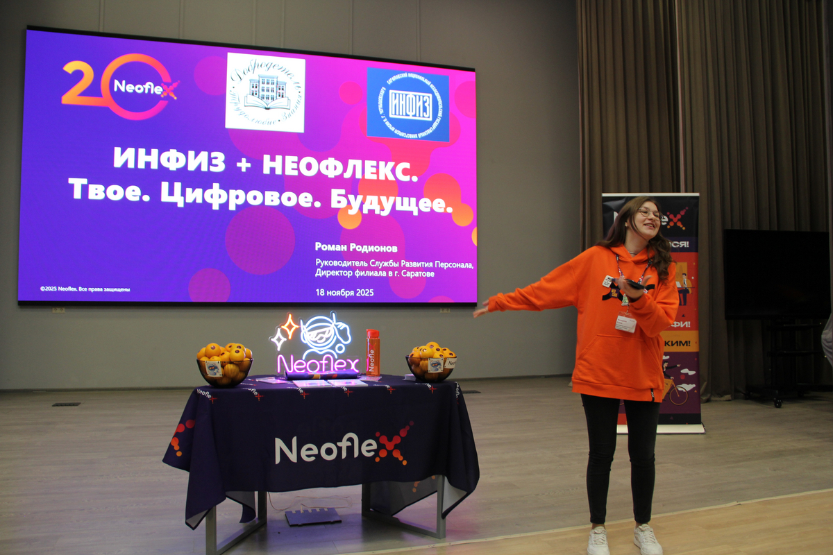 18 ноября компания «Неофлекс» совместно с Институтом физики СГУ провели профориентационную встречу со старшеклассниками Лицея-интерната №64. Учащиеся 10–11 классов, обучающиеся по направлениям «Программирование» и «Робототехника», узнали о ключевых проектах компании, её роли в IT-индустрии и возможностях для начинающих специалистов.