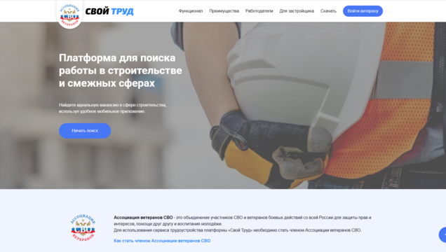 В помощь ветеранам специальной военной операции была создана платформа «СВОй труд». Данный ресурс призван помочь ветеранам в поиске работы и стажировок, построении карьеры в различных отраслях. Основателями и партнёрами платформы выступают Минстрой РФ, Ассоциация ветеранов СВО, ПАО Ростелеком, The White, Цифра Инвест.