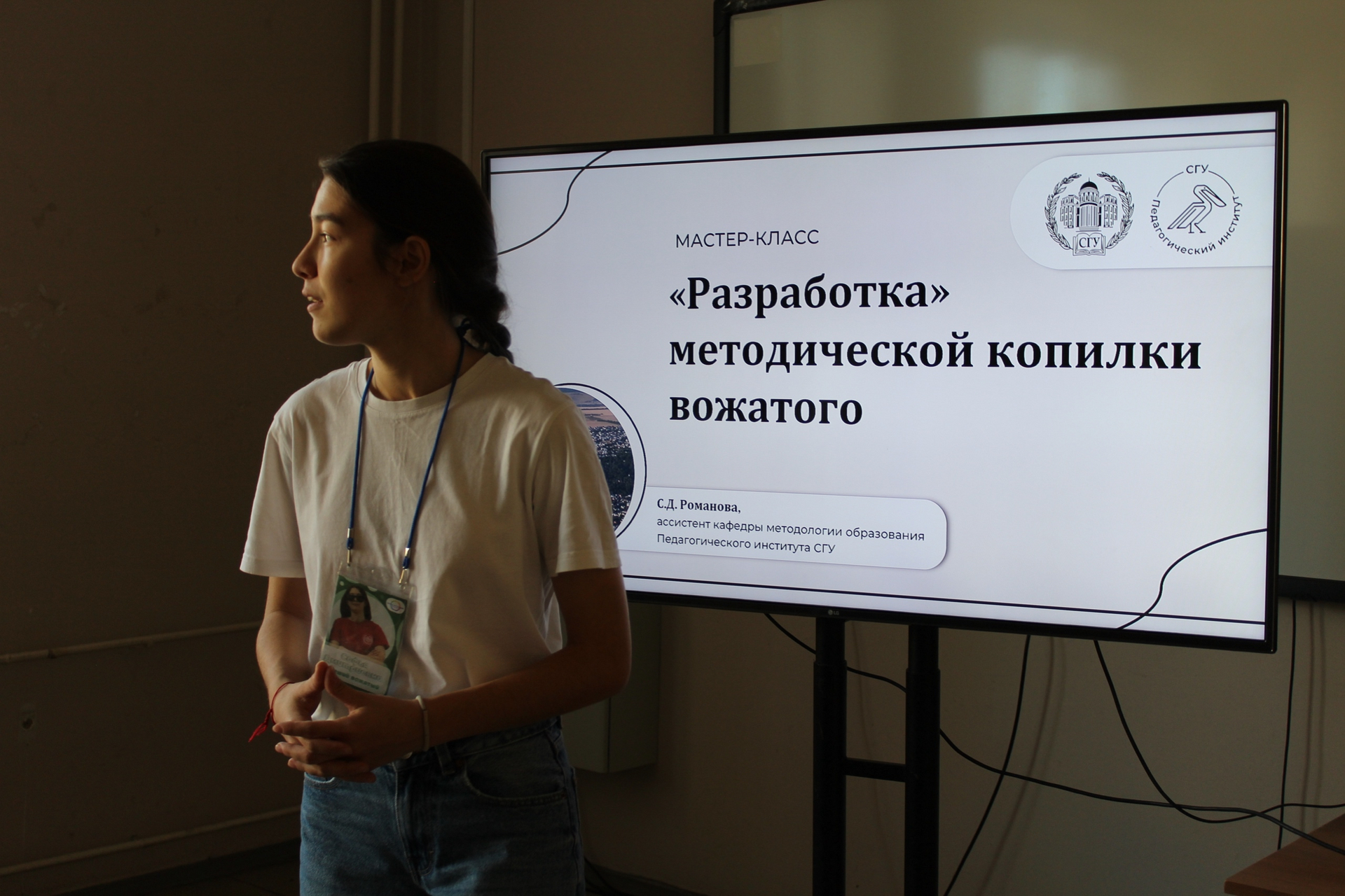 На мастер-классе «Разработка методической копилки вожатого» ассистента кафедры методологии образования Педагогического института СГУ Софьи Дмитриевны Романовой конкурсанты проверили умение выбирать наиболее подходящие способы решения ситуаций с точки зрения различных позиций вожатого. У участников мастер-класса была отличная возможность обменяться опытом в командах со своими коллегами. В качестве наставников для команд выступили уже опытные вожатые: Ксения Волкова, студент факультета психолого-педагогического и специального образования Педагогического института СГУ София Лазарева, студент факультета гуманитарных дисциплин, русского и иностранных языков Педагогического института СГУ, советник директора по воспитанию ГБПОУ СО «Дергачевский агропромышленный лицей» Ольга Кукушкина, студент ГАПОУ СО «Саратовский областной педагогический колледж» Екатерина Романова.