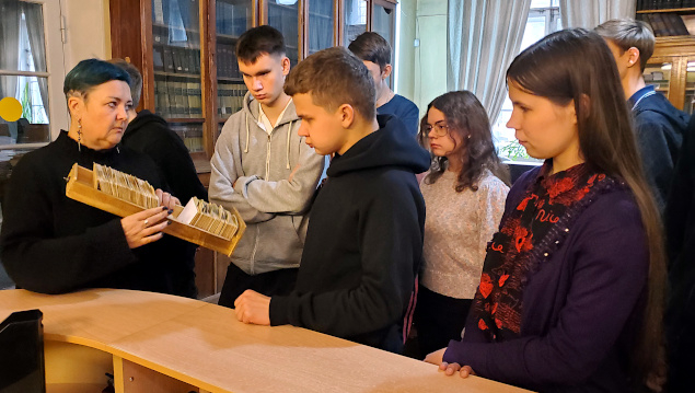 Студенты познакомились с общими правилами пользования библиотекой, организацией карточных каталогов (алфавитных, систематического), системой поиска и заказа книги. Отдельный этап экскурсии был посвящён электронным каталогам и базам.