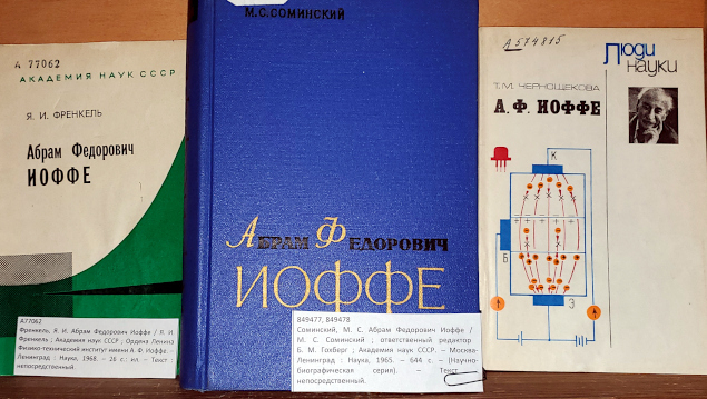Также выставка знакомит читателей с учебником для вузов «Курс физики», подготовленным А. Ф. Иоффе в соавторстве с другими физиками
