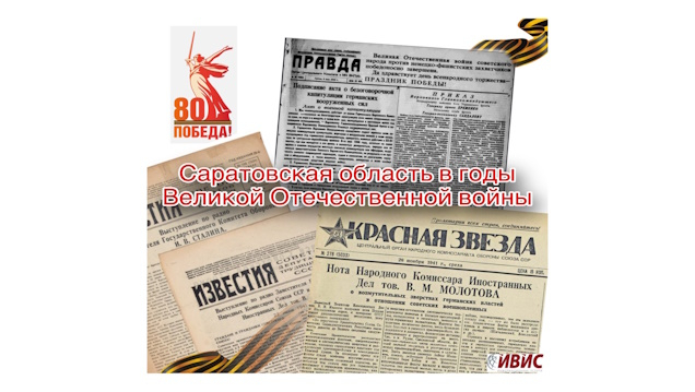 К 80-летию Победы в Великой Отечественной войне отдел научной информации ЗНБ СГУ продолжает проект «Саратовская область в годы Великой Отечественной войны на страницах центральной прессы». Информационную поддержку оказывает компания «ИВИС», предоставившая доступ к коллекции «Строки, опалённые войной».