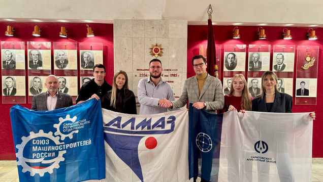 17 октября состоялась встреча Председателей Советов молодых учёных и специалистов крупнейших Саратовских предприятий. Мероприятие прошло в рамках проекта «Это всё Ростех» и стало важным шагом в развитии сотрудничества. Аспиранты кафедры электроники, колебаний и волн СГУ и сотрудники теоретического отдела АО «НПП «Алмаз» Иван Чистяков и Федор Разуваев посетили корпоративный музей АО «Саратовский агрегатный завод». На экскурсии студенты познакомились с историей завода, ключевыми проектами и технологиями. Были затронуты вопросы привлечения молодых специалистов, инженерного творчества и корпоративного сотрудничества. Подобные мероприятия способствуют укреплению корпоративной культуры, профессиональному росту и интеграции инженерных сообществ предприятий Ростеха.