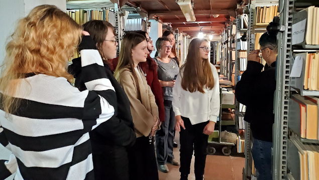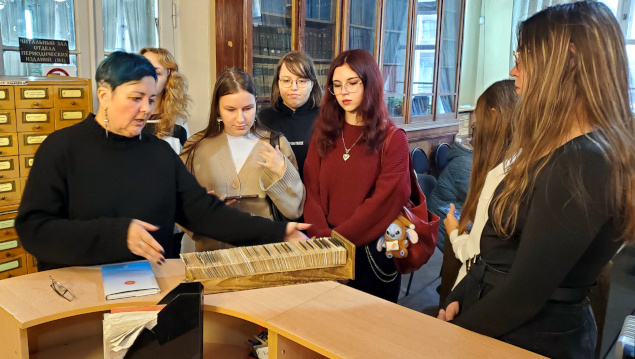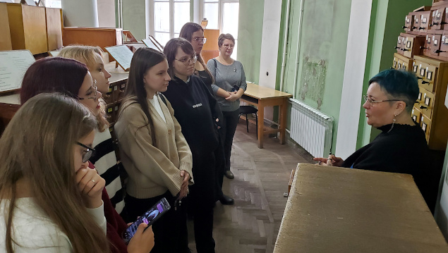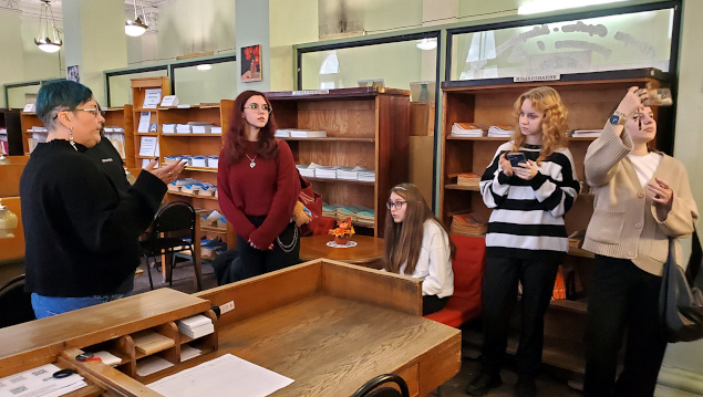 В книгохранилище и справочно-библиографическом отделе узнали о различных способах организации хранения фондов. В отделе периодических изданий студенты имели возможность увидеть научные и научно-популярные журналы, узнать структуру журнала как издания, алгоритм пользования читательскими алфавитными каталогами, а также об особенностях хранения газет.