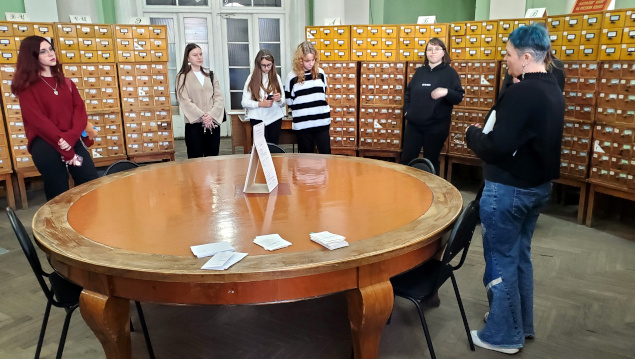 На экскурсии студенты познакомились с историей библиотеки, с общими правилами пользования библиотекой, организацией карточных каталогов (алфавитных, систематического), системой поиска и заказа книги, посетили отдел абонементов.